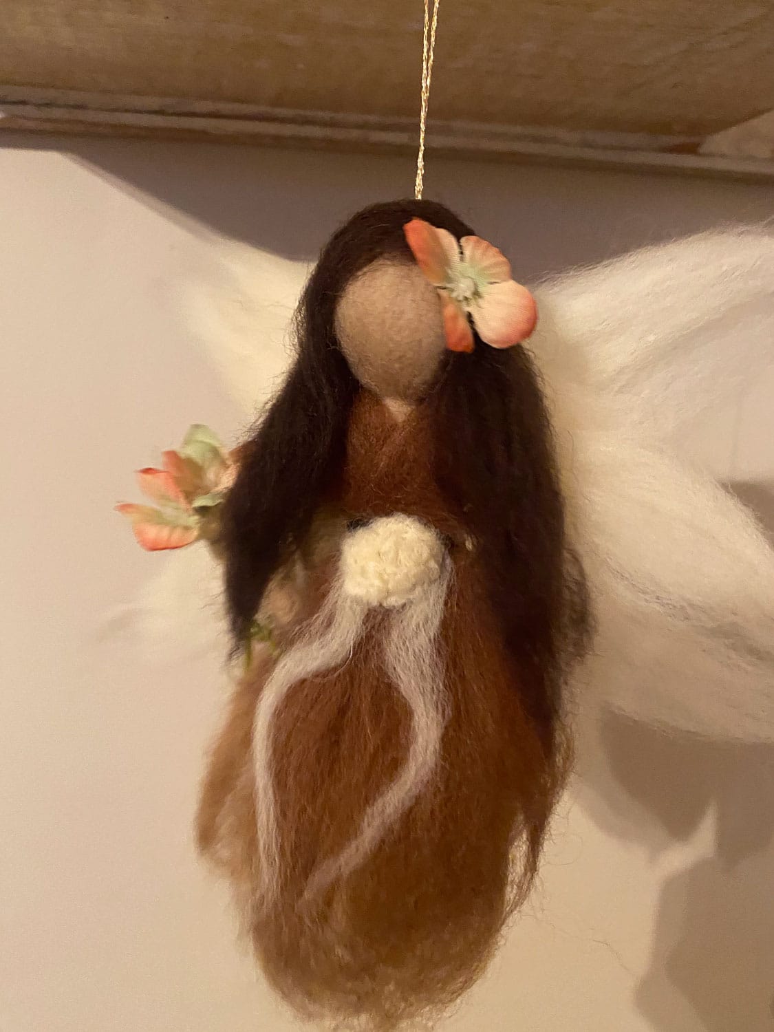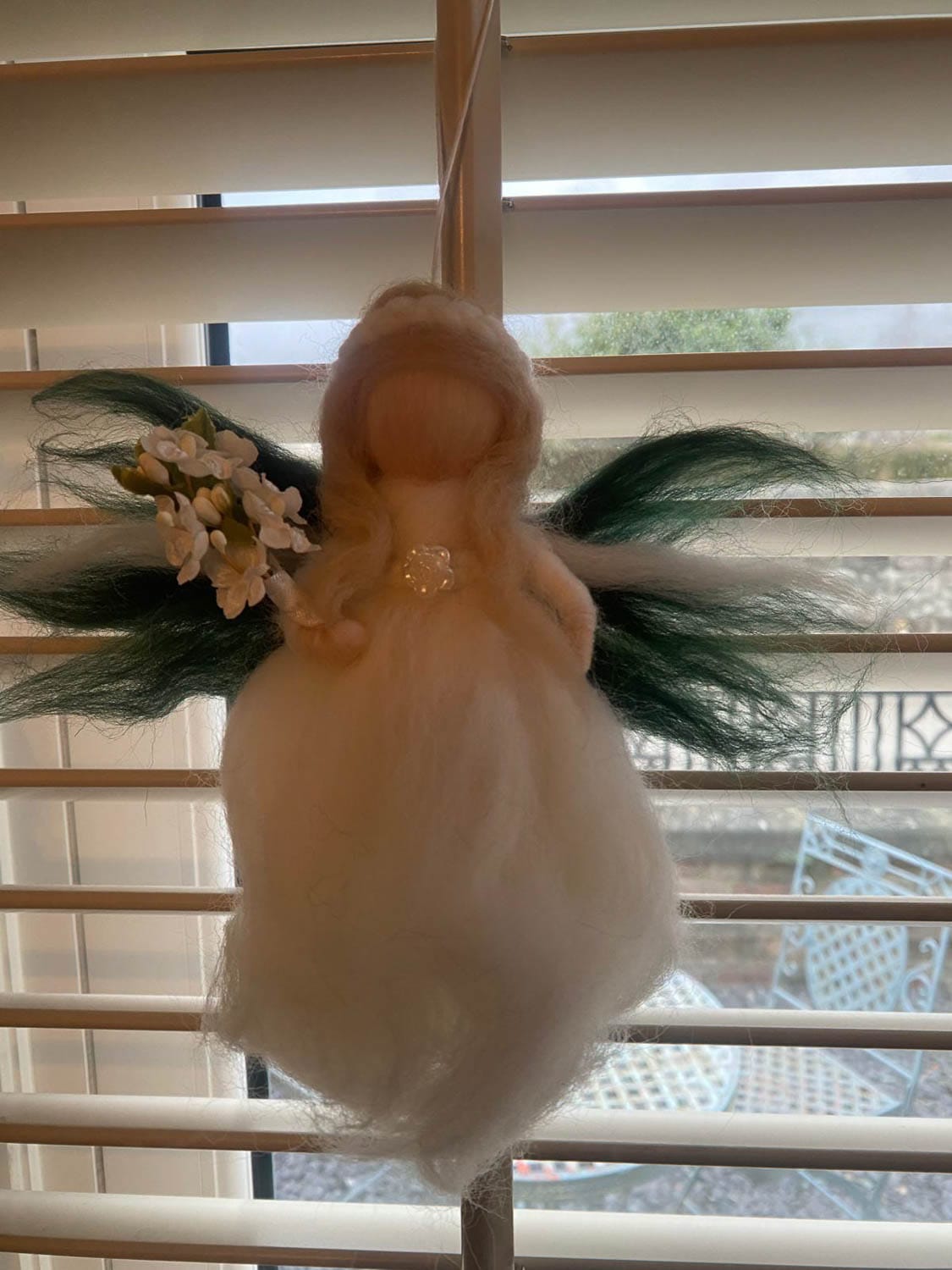 The fairies are individually created and made out of wool and love! Each fairy can be made to the customers requirements to match skin tones/hair colour/style/favourite dress/wing colours, which makes them bespoke to the customer. Or choose one I have lovingly made. They are a perfect unique decoration and make a beautiful gift for any special occasion such as Christenings, Weddings (bride/bridesmaids) Birthdays, Christmas, Graduations or simply just to have to admire. Whether you like a natural woodland fairy a flower fairy, or a fairy that reminds you of someone you love, there will a fairy that you will adore!