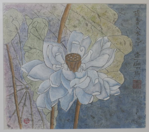 Lotus flower – Stylised chinese brush painting on sized xuan paper.