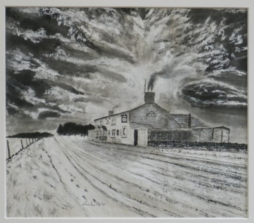 Royalty pub, Otley Chevin – Brushed ink on xuan paper.