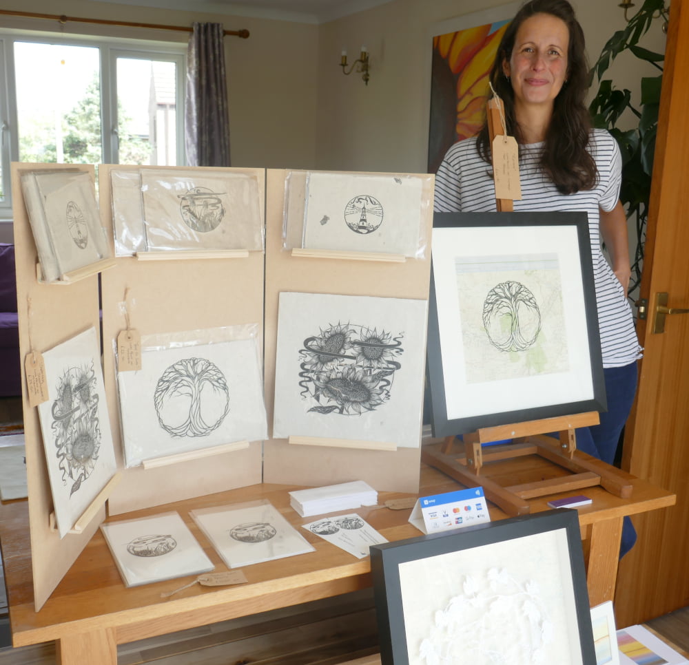 She can explain her methods to achieve her detailed and intricate artworks including delicate suspended papercuts and detailed lino prints of sunflowers.