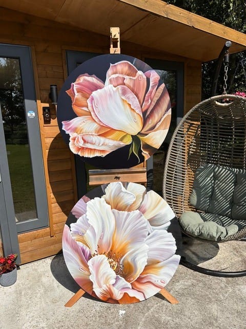 Hamish & Brenda’s artwork is rooted in a deep appreciation for nature, storytelling and texture. Brenda’s paintings often explore bold florals, rural scenes and emotional expression through layered brush work and rich colour palattes. While Hamish brings a sculptural and experimental touch to his pieces often incorporating, natural forms, landscapes and subtle textures. Together their work blends, playfulness and thoughtfulness with each piece, inviting the viewer to pause, reflect and connect with the world in a more imaginative way.