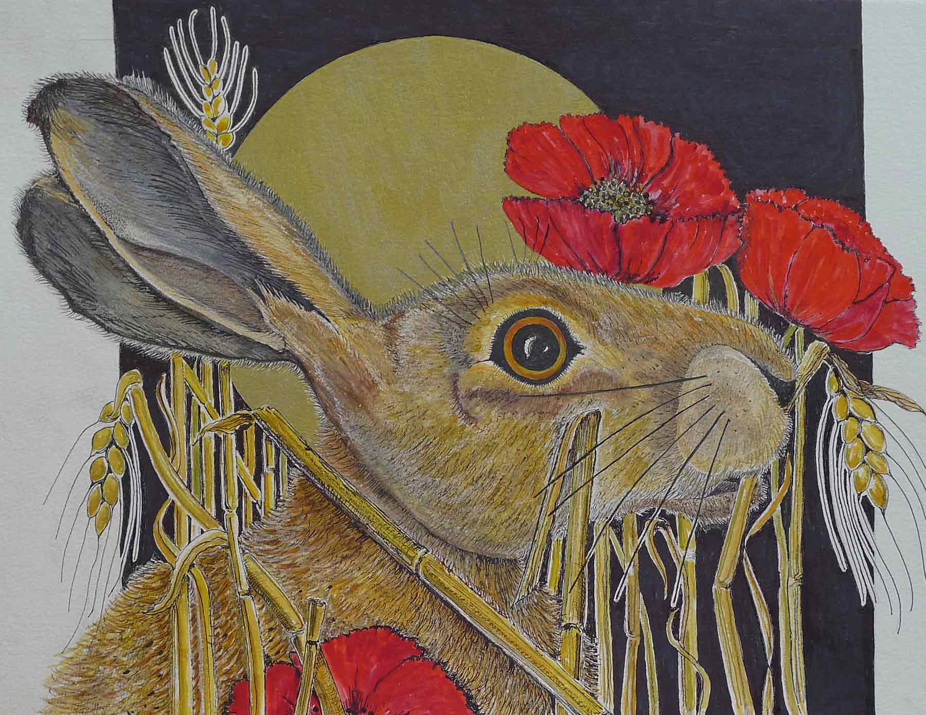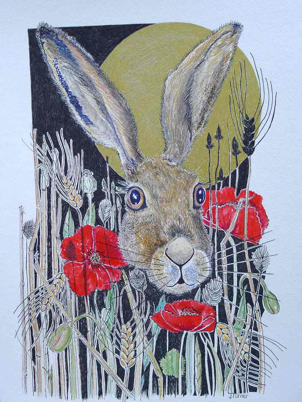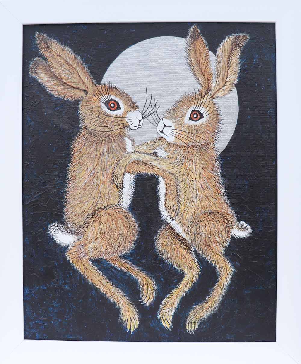 Jean met her husband, Richard at Chesterfield Art School. She showed and sold her work at a Chesterfield Gallery. They lived in Dallowgill for many years, high above the Yorkshire Dales, and had been influenced by the wilderness of the countryside and the amazing coastline. These were the source of her inspiration for paintings and collage of hares, flowers, sea shore, pebbles and shells.