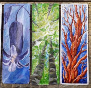 Summerbridge Methodist Church has taken up the ‘Woodlands’ theme in the large striking banners by their artists displayed on the church wall for all to