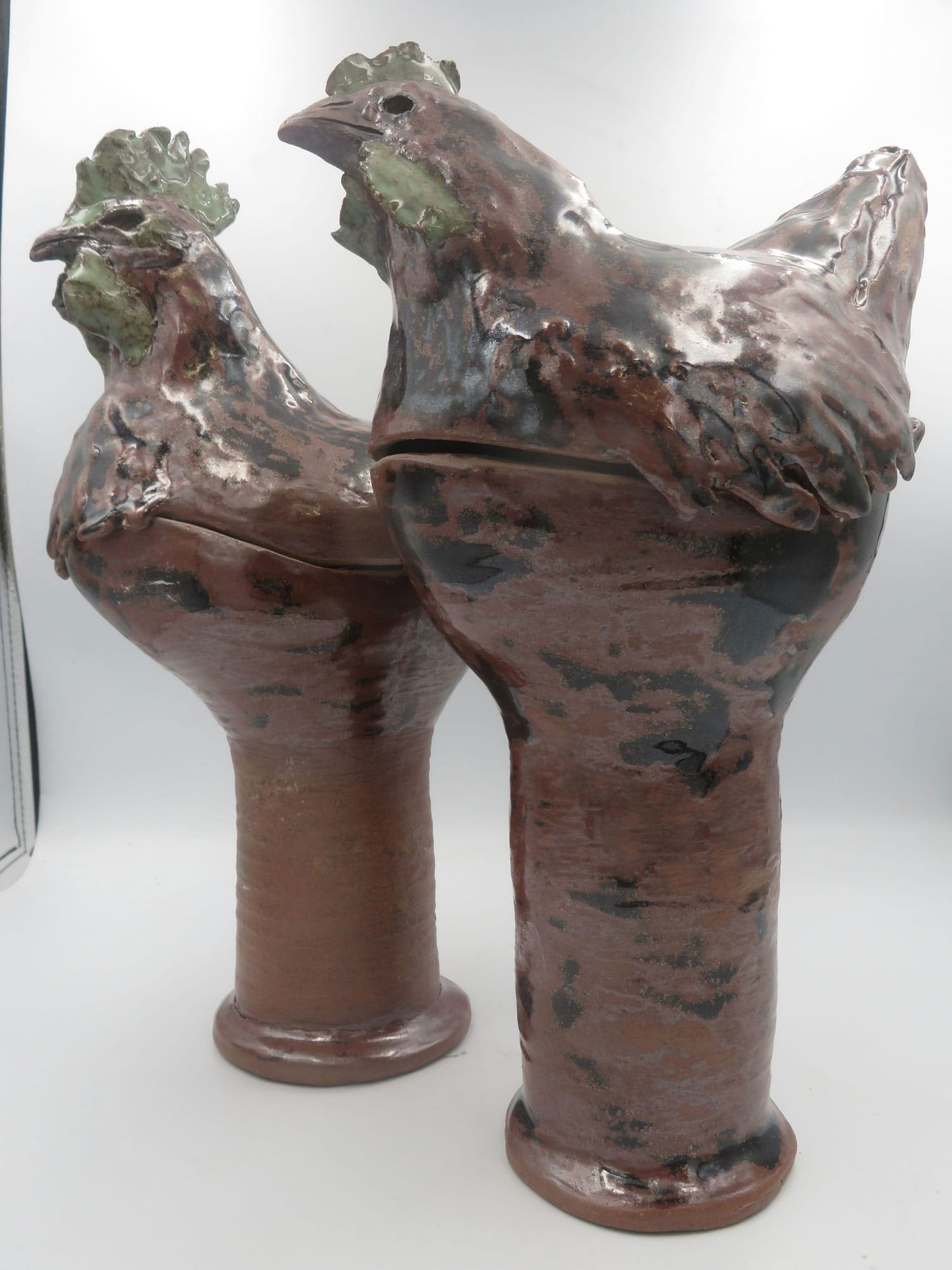I bought my glass kiln a few years ago and have fallen in love with the art of creating in glass, its transparency, colour, and effects of light. Working with kiln fired glass involves careful planning, designing, cutting, then laying the work in the kiln, and there is nothing to beat the excitement of opening the kiln as it cools, to see how this tricky material has adapted itself to the idea in my mind. I also continue to work in clay, enjoying its hands-on plasticity. It offers very different challenges, although there is the same joy of opening the kiln to see the results. Ceramics, being opaque, make you focus on the surface. Some of my pots are textured with antique lace, others are saggar fired with copper wire and seaweed adding to the textures. I am currently on a degree course in Ceramics and Glass at Sunderland University, the home of great glassworking, and am expanding the range of my work.